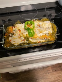 Pour into a casserole dish and top with sliced Gouda cheese ( with Daiya the blocks melt better) top with 365 plant based cheddar cheese shredspentos, green peppers and jalapeños bake at 425 for or until the tatter tots are cooked and the cheese is melted top with follow your heart plant based sour cream and garnish with remaining green pepper